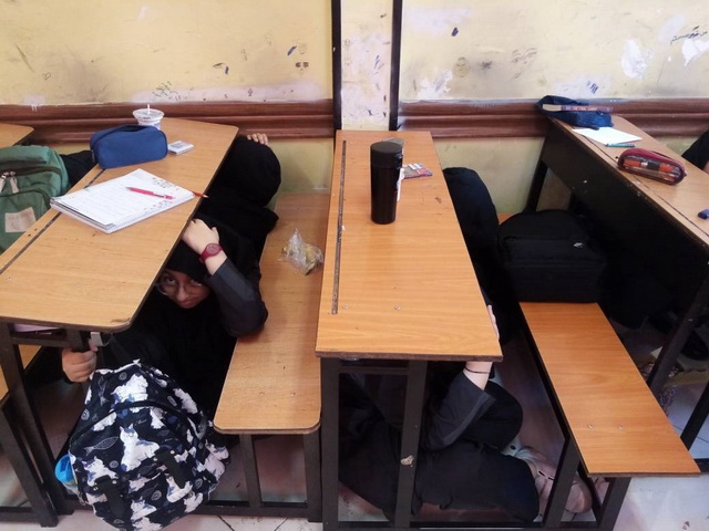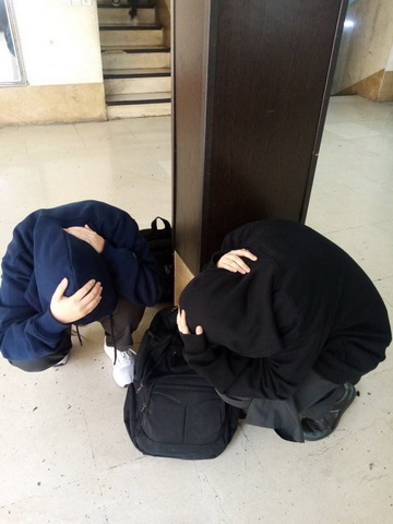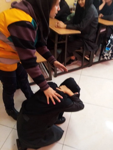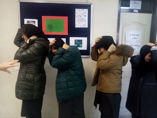 دختران گل ابتدا به صورت کامل نقاط امن و نحوه پناه گیری در کلاس درس، راهروها، راه پله ها، حیاط مدرسه و نحوه خروج را آموزش دیدند و سپس به صورت عملی اجرا کردند.